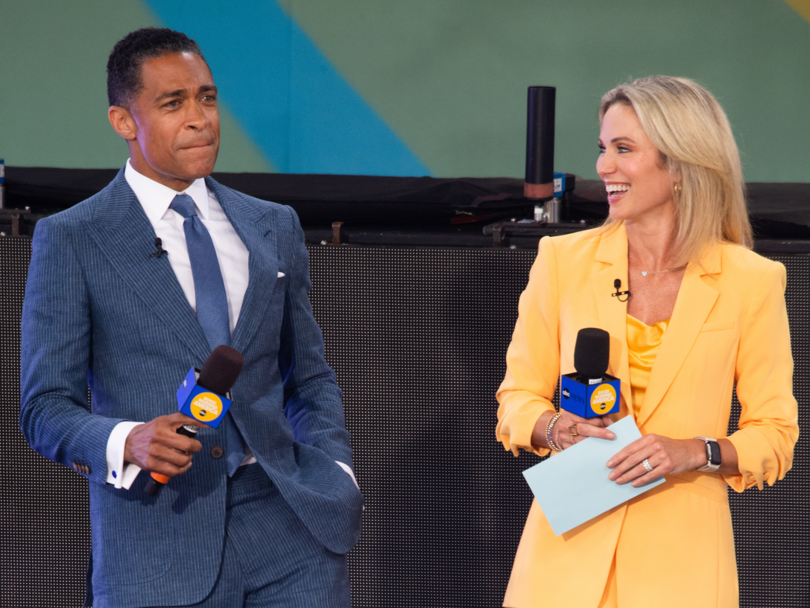 Good Morning America cohosts Amy Robach and TJ. Amy Robach and TJ.